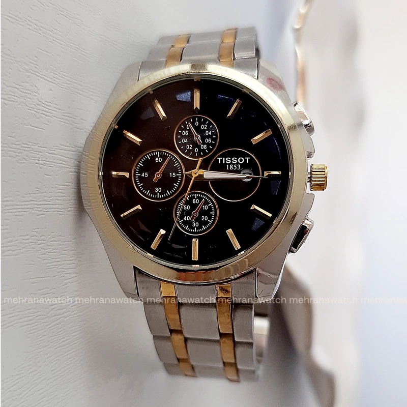 ساعت زنانه تیسوت استیل رنگ ثابت صفحه مشکی طرح سه موتور