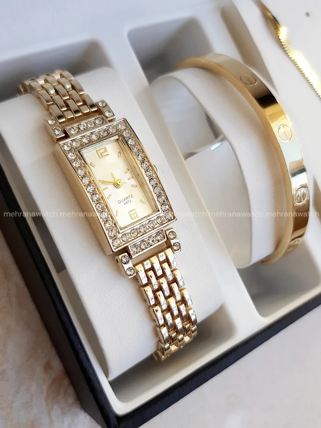 ست کامل شامل ساعت، گردنبند ماری، بنگل استیل و رینگ استیل